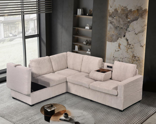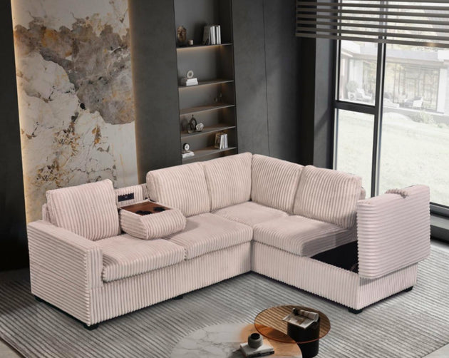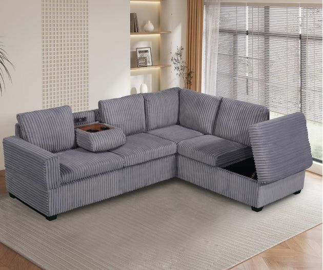Snuggler Reversible Sectional Sofa Drop Down Console and USB Ports