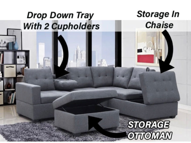 Monroe Modern Sectional Sofa with Storage & Ottoman