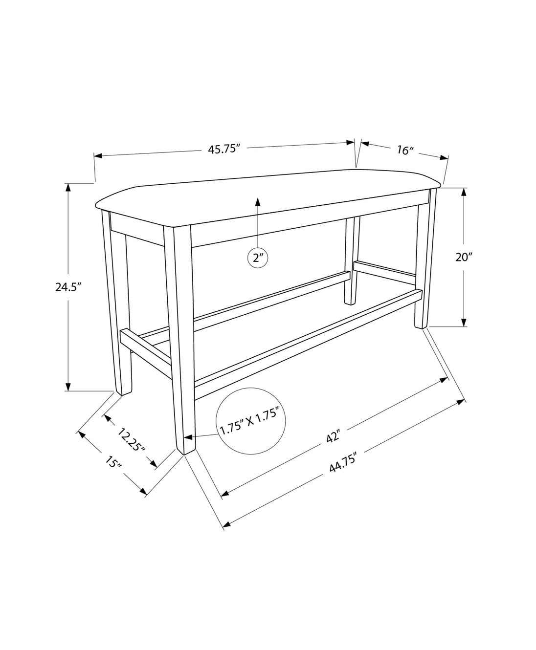 Step up your dining room or kitchen game with this fashionable 46" rectangular bench in antique grey with solid wood legs. Upholstered in a chic black fabric, the foam cushioned padded seat is not only comfortable but also durably designed for long-lasting use. Easy to assemble with the illustrated instructions included and with a 2 year limited warranty against manufacturer defects, this bench is as practical as it is stylish. The transitional design of this bench seamlessly blends with any decor. Pair it with a matching counter height dining table (sold separately) and create an impressive dining space with fashionable style for you and your guests.