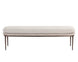 Rejuvenate any space with this contemporary bench that features a sleek design. Upholstered in chacha cream and meg taupe fabrics with a double cushioned seat. Completed with a dark bronze stainless steel base. Also available in a chacha grey and antonio charcoal fabric combination with a gunmetal stainless steel base. Coordinating stool also available.