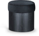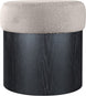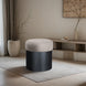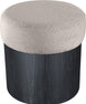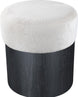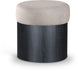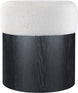Strikingly modern, the Nimes beige velour fur fabric upholstered ottoman combines plush comfort with sleek design. The top is wrapped in luxurious velour fur fabric, offering a soft and inviting texture, while the cylindrical rich black wooden base provides a minimalist contrast. This versatile ottoman is perfect as extra seating, a footrest, or a stylish accent in any living space.