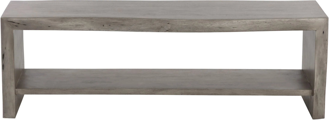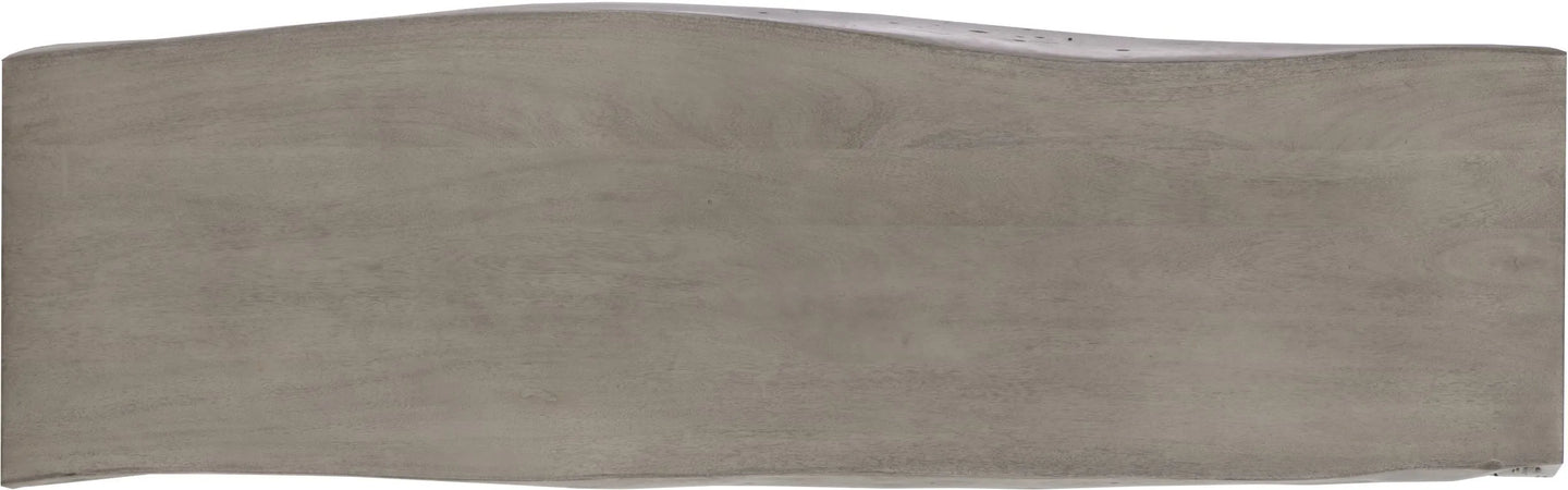 Introduce a sense of nature to any foyer or living space with this captivating live edge bench that features a stunning waterfall edge design. Crafted from solid grey acacia wood with a bottom shelf for added functionality. Also available in natural acacia wood. As wood is an organic, porous material, these pieces will contain natural variation of texture and may also exhibit fine indentations and cracks. Wood pieces will also display a disparity of colour and grain, and visible knots and burls that add to the character of each piece.