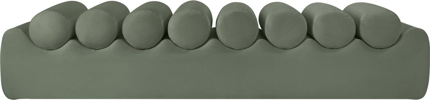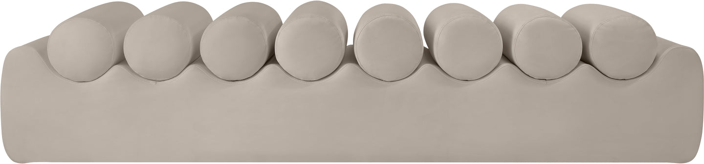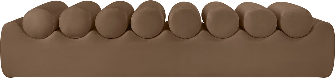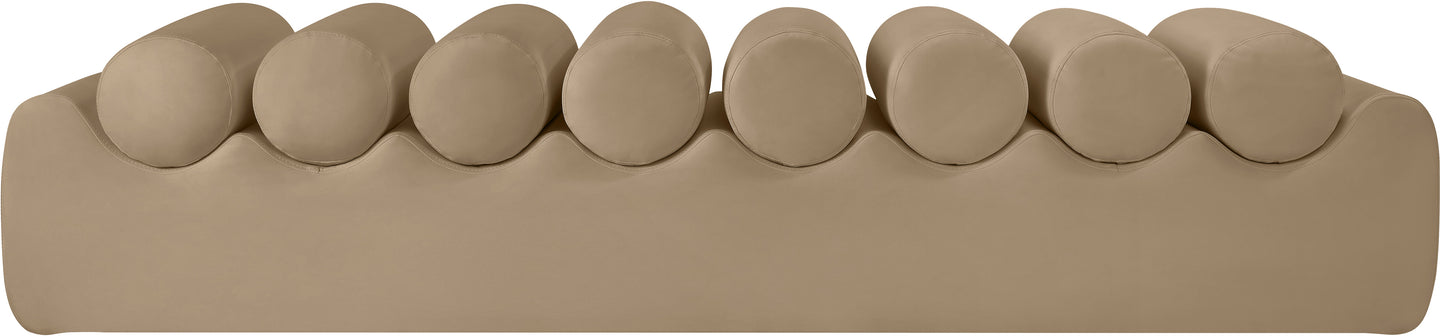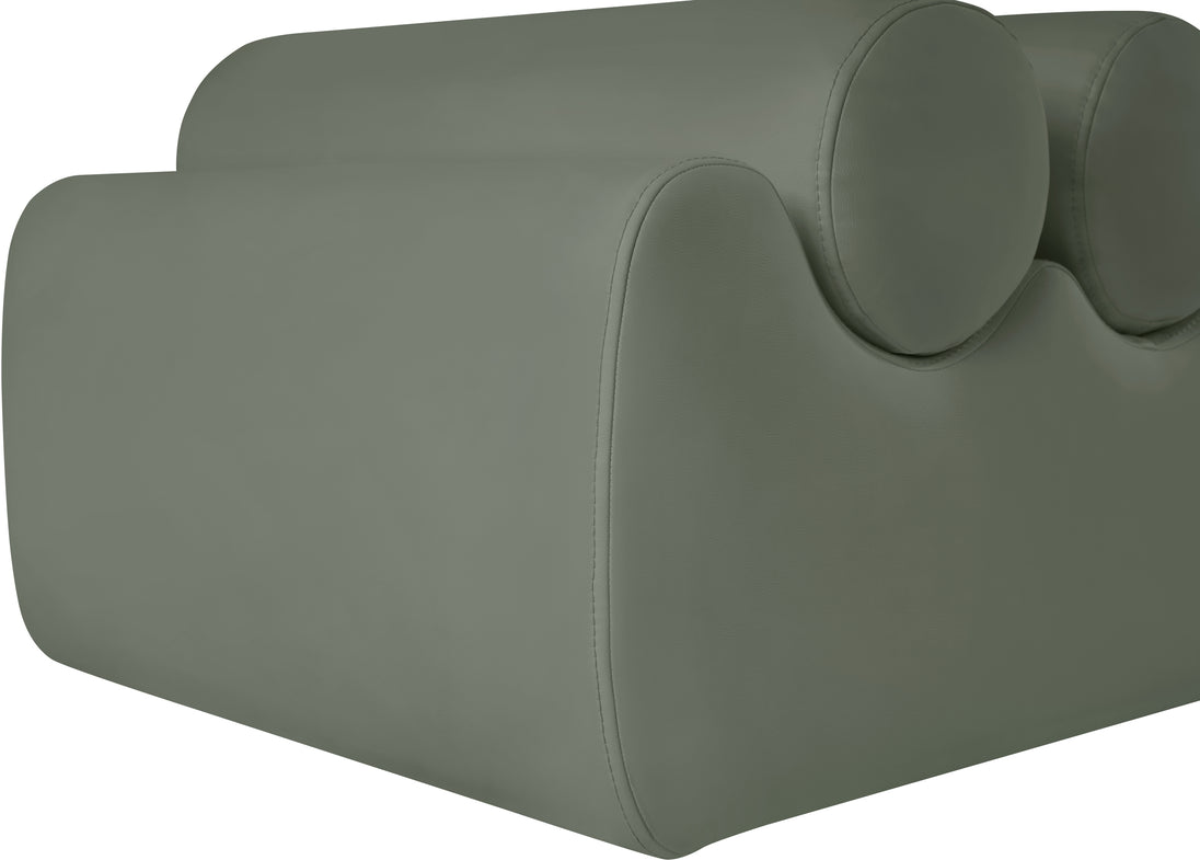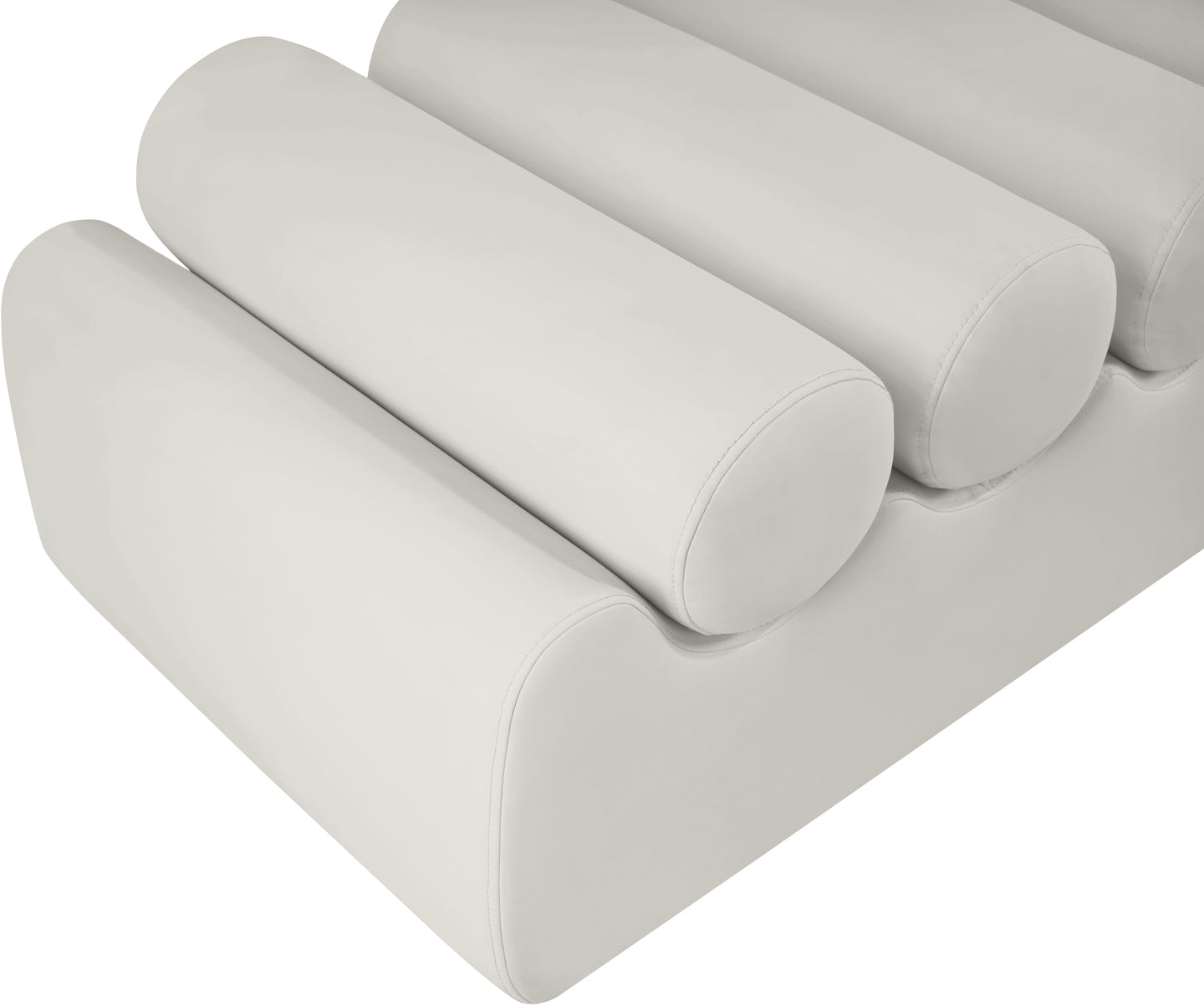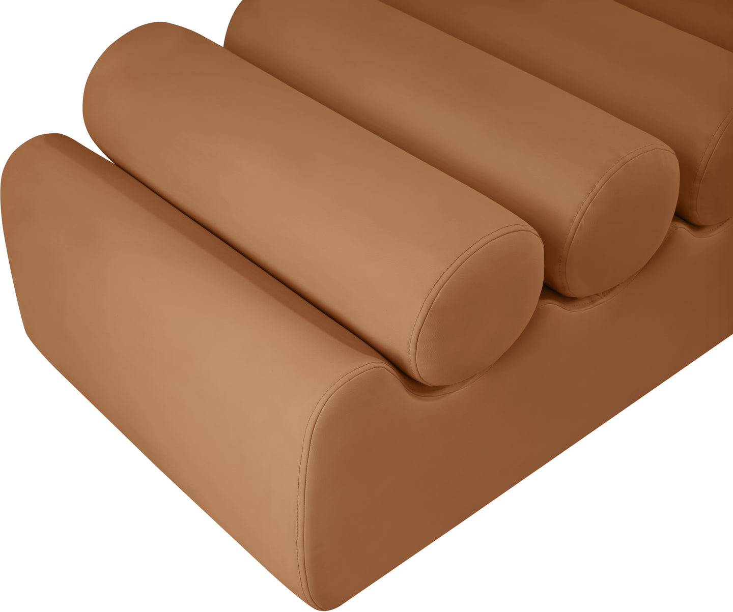 Designed to make a statement, the Rumble black vegan leather upholstered bench features bold cylindrical cushioning that offers both visual intrigue and comfort. Wrapped in sleek vegan leather adds a modern, polished feel, while the unique roll-like seating gives this bench a distinctive look. Perfect for contemporary spaces, the bench is as functional as it is stylish, providing an unexpected yet sophisticated seating option for living rooms, bedrooms, or entryways.