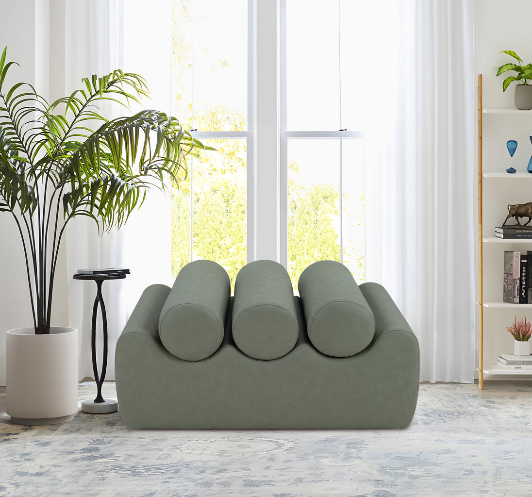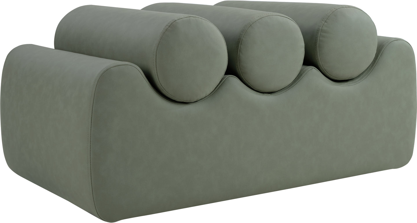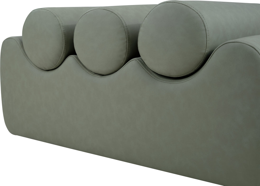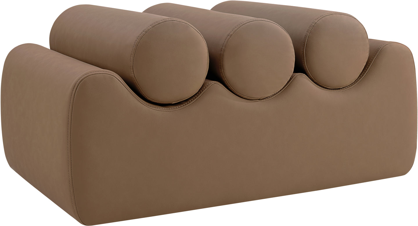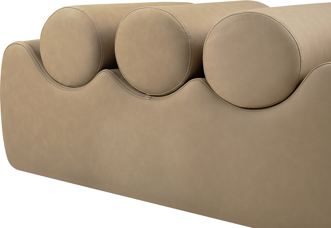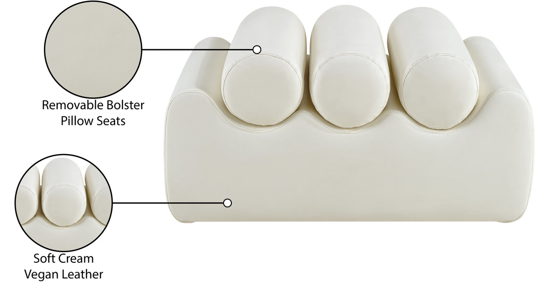 Discover the Rumble black vegan leather bench, featuring a sleek, soft feel that adds a touch of contemporary elegance to any room. This stylish bench offers three removable bolster pillow seats for enhanced comfort and versatility. Its modern design seamlessly blends with various decor styles, making it a versatile choice for your entryway, living room, or bedroom.