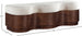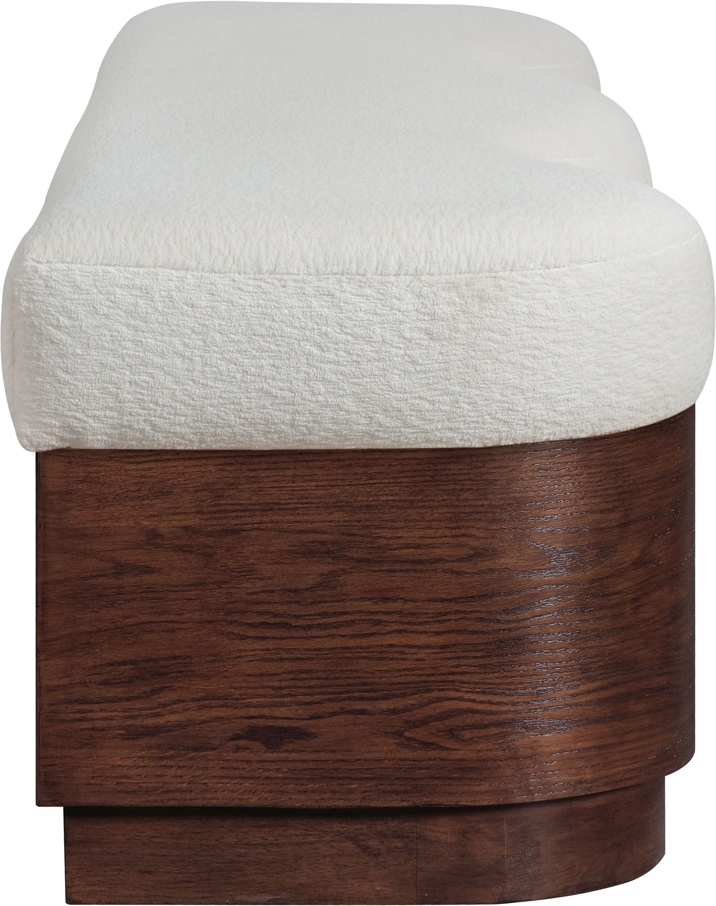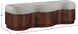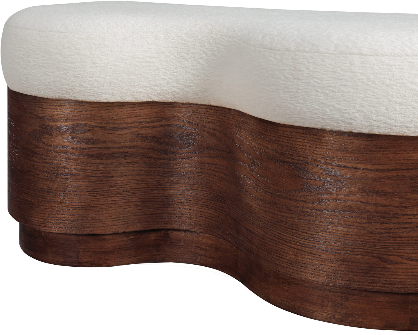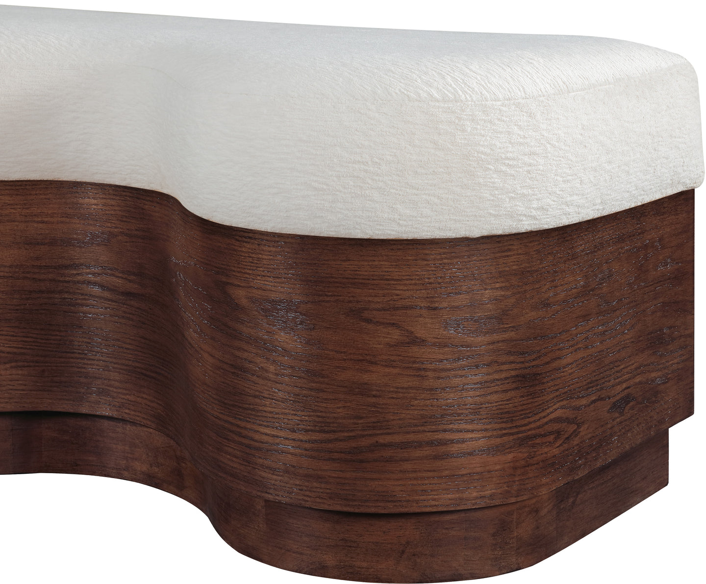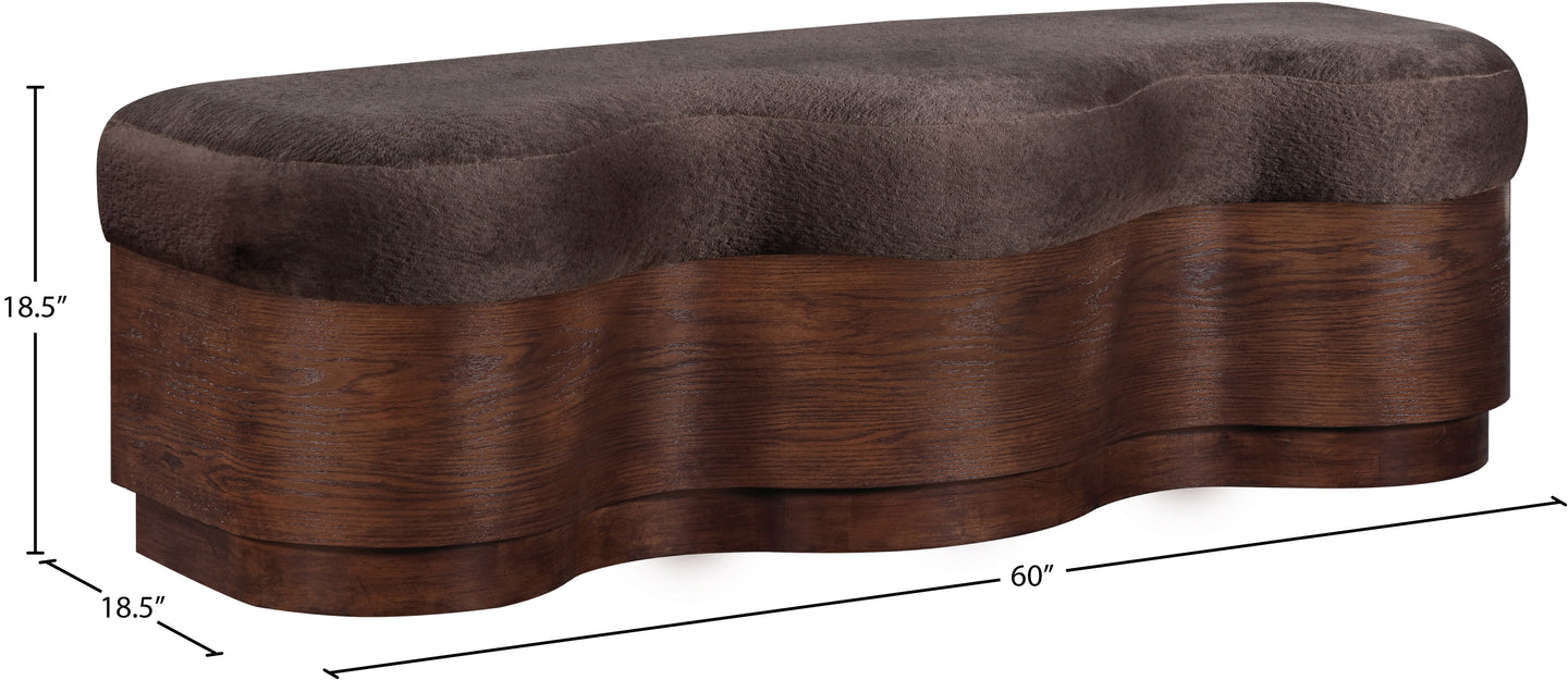 The bold and artistic Savoy beige velour fur fabric upholstered bench brings a unique wave-like design to your space. Plush velour fur fabric atop creates a soft, luxurious seating experience, while the sculptural wooden base in a rich brown walnut finish adds a playful yet sophisticated touch. Perfect for those seeking to make a statement, it blends form and function, offering comfort and style in one eye-catching piece.