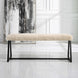 A space saving seating solution featuring a slim bench seat upholstered in plush long haired faux sheepskin in a toasty beige over a matte black finished iron base. Seat depth is 8".