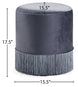 Bring a touch of romance to your space with this frilly Teddy Green Velvet Ottoman/Stool. A fringed border of tassels surrounds the bottom perimeter of the stool, giving it a somewhat Bollywood-inspired vibe. The stool itself is upholstered in velvet for a posh feel and sumptuous look wherever you choose to use it. Put it in the living room as a fun and exciting accent and prop for your feet, or use it in the bedroom for a bit of boudoir inspiration.