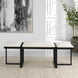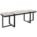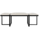 This modern design welcomes you and your friends, showcasing an angular black iron framework with three upholstered seat cushions in a textured white polyester performance fabric.