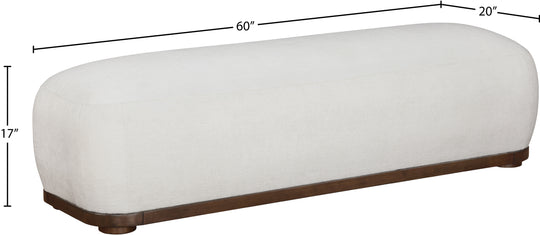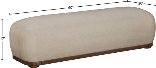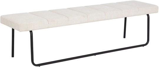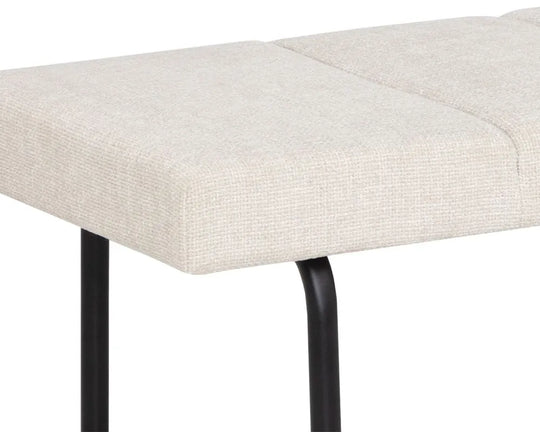 A modern bench that will add function and sleek modern style to any space. Stocked in chacha cream fabric and completed with an alluring matte black powder coated metal base. Also available in hazelnut faux leather.Specifications...Sale price $898.00Regular price $1,197.00Sale price $898.00Regular price $1,197.00