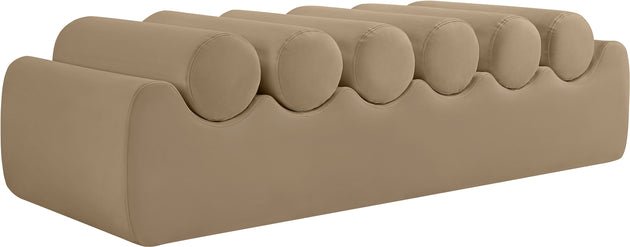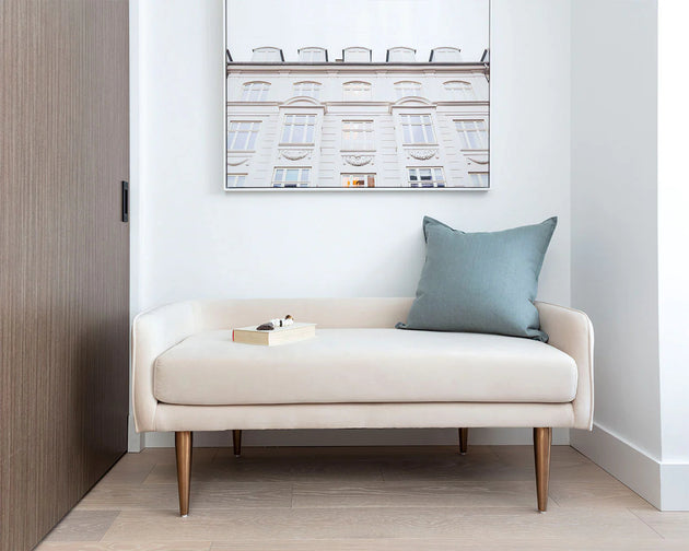 Serena Elegant Pink Velvet Bench with Polished Gold Base