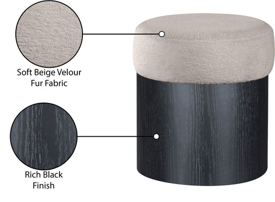Strikingly modern, the Nimes beige velour fur fabric upholstered ottoman combines plush comfort with sleek design. The top is wrapped in luxurious velour fur fabric, offering a soft and inviting texture, while the cylindrical rich black...Sale price $375.00Regular price $500.00Sale price $375.00Regular price $500.00 -