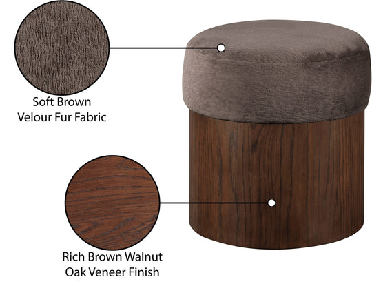 Strikingly modern, the Nimes beige velour fur fabric upholstered ottoman combines plush comfort with sleek design. The top is wrapped in luxurious velour fur fabric, offering a soft and inviting texture, while the cylindrical rich brown...Sale price $375.00Regular price $500.00Sale price $375.00Regular price $500.00 -