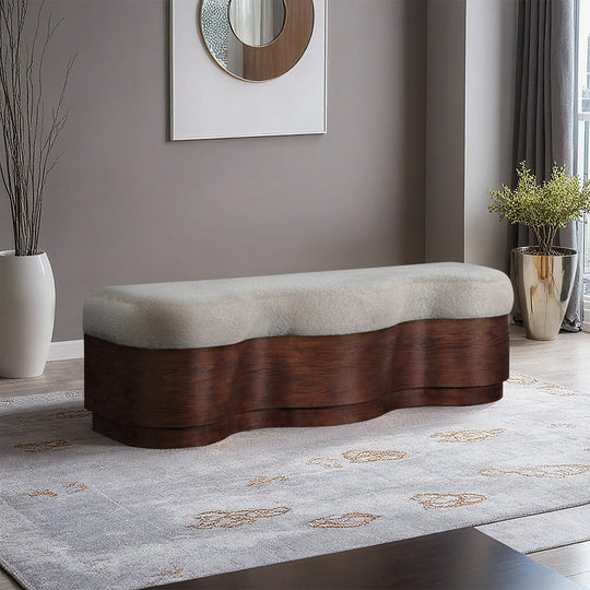 The bold and artistic Savoy beige velour fur fabric upholstered bench brings a unique wave-like design to your space. Plush velour fur fabric atop creates a soft, luxurious seating experience, while the sculptural wooden base in...Sale price $1,215.00Regular price $1,620.00Sale price $1,215.00Regular price $1,620.00 -