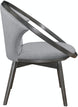 Specifications: Solid rubberwood frame. Foam padded cushions. Tweed herringbone fabric upholstery. Attached back and seat cushions. Exposed wood frame with dark charcoal finish. Assembly required. Weight capacity: 300lbs. Fabric Type: Textured. Fabric Color: Gray. Fabric Content: 100 percent polyester. Fabric Cleaning Code: Upholstery (S). Prop 65 Information.