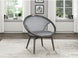Product Description: Styled for your modern home, the Lowery Collection is an homage to Mid Century design. Tapered, splayed legs support the round frame of this unique accent chair. The gray tweed herringbone fabric with dark charcoal finished frame allows for perfect placement within your home.