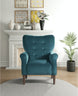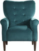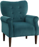 Product Description: The classic style of the Kyrie Collection lends perfect accent to your home's decor while providing the additional seating that your space needs. The teal velvet covering lends a dramatic pop of color while the traditional contoured arms and back lend to the timeless look.