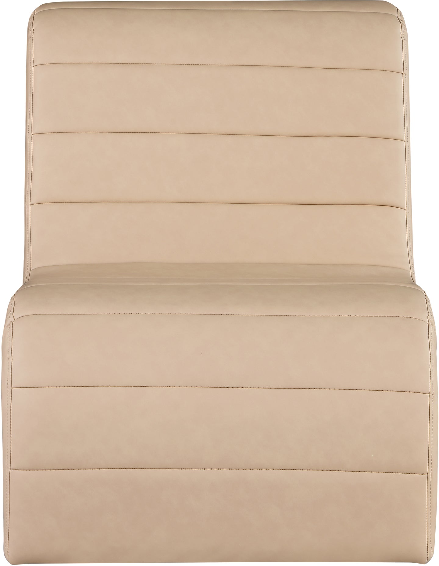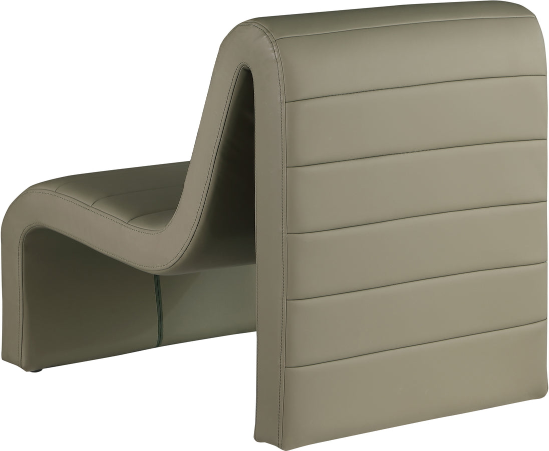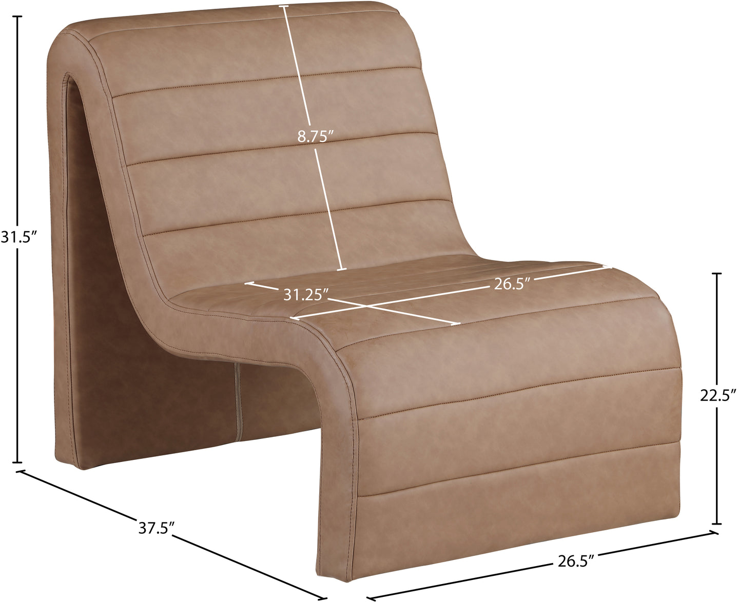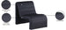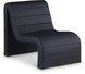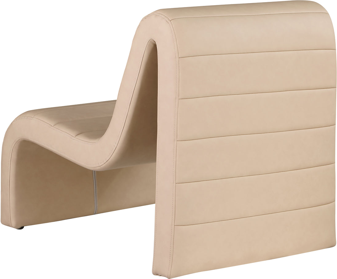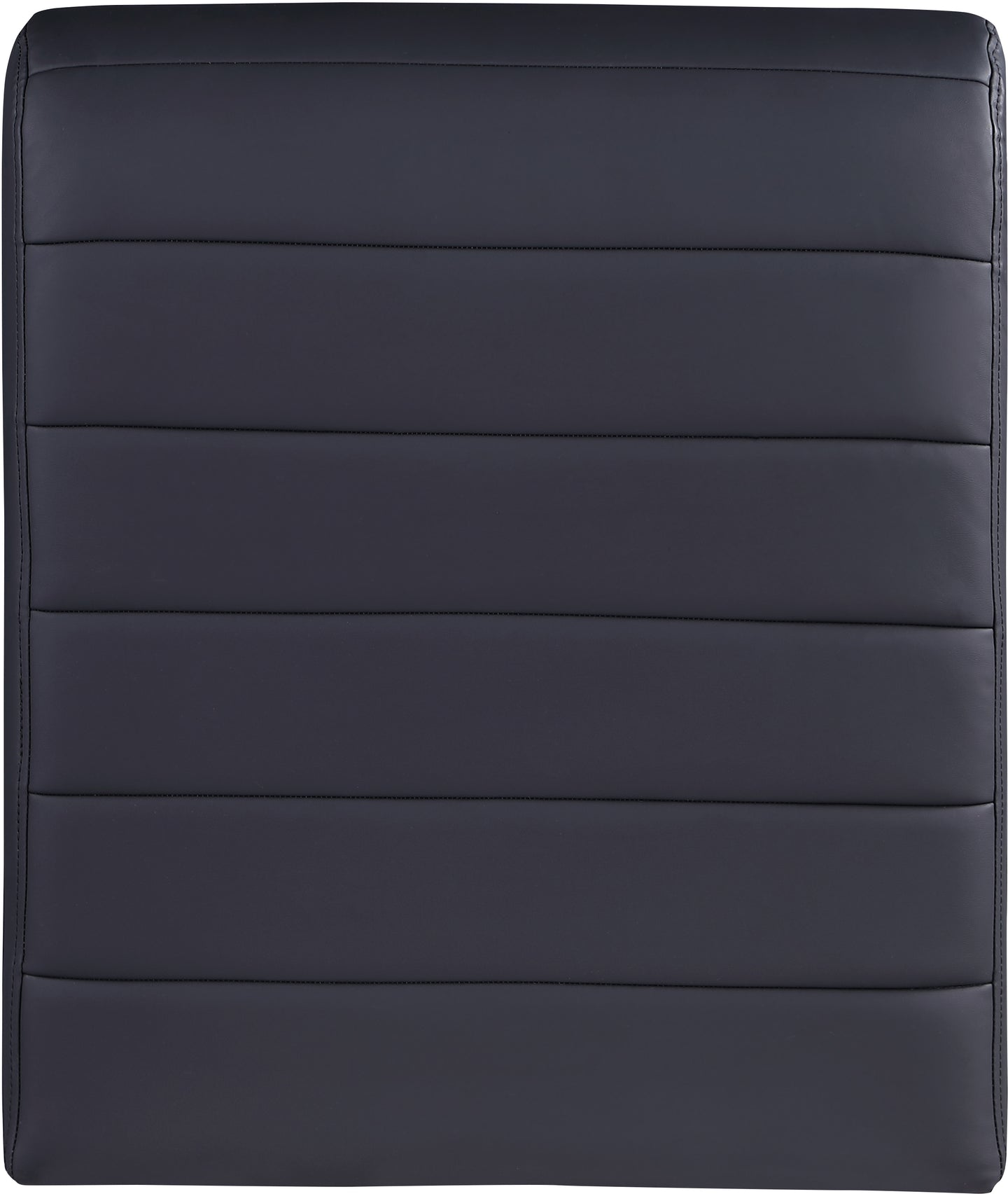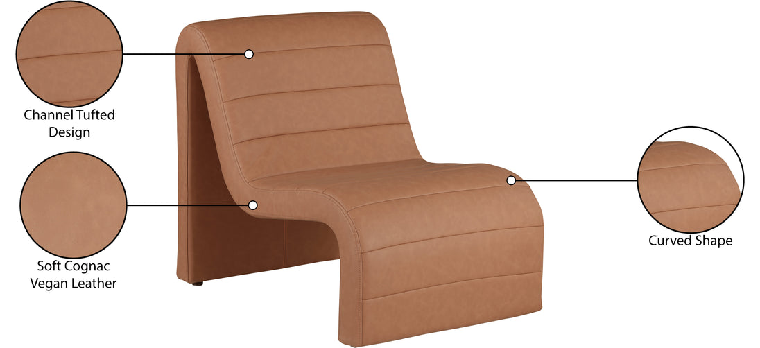 Count on this Ivy black vegan leather accent chair quickly becoming the most coveted seat in the house. Wrapped in soft vegan leather and adorned with a channel tufted design, its curved shape offers unparalleled comfort and support. Designed for the modern home, it effortlessly blends contemporary aesthetics with luxurious materials. Whether placed in a cozy corner or as a standout piece in your living room, this chair invites you to unwind in unparalleled elegance and enjoy a moment of tranquil indulgence.
