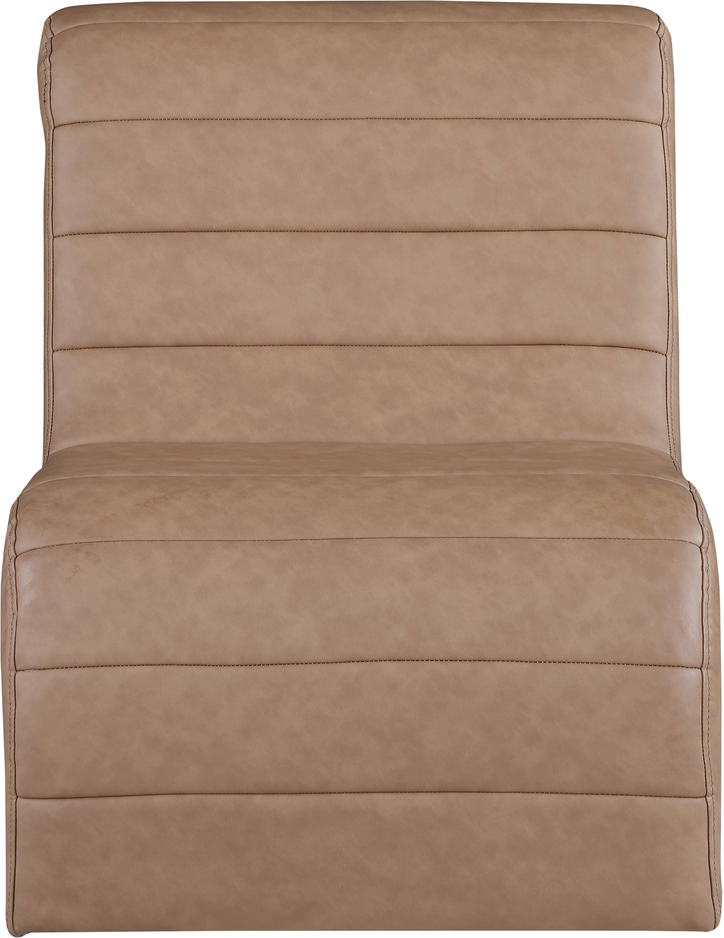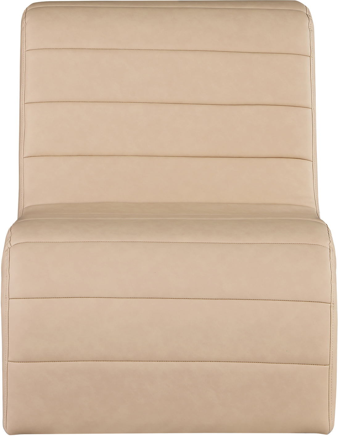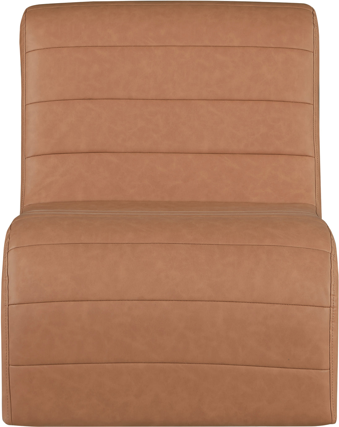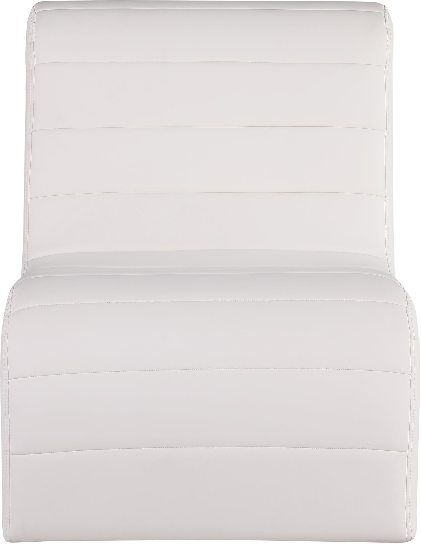 Count on this Ivy black vegan leather accent chair quickly becoming the most coveted seat in the house. Wrapped in soft vegan leather and adorned with a channel tufted design, its curved shape offers unparalleled comfort and support. Designed for the modern home, it effortlessly blends contemporary aesthetics with luxurious materials. Whether placed in a cozy corner or as a standout piece in your living room, this chair invites you to unwind in unparalleled elegance and enjoy a moment of tranquil indulgence.