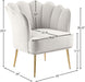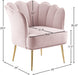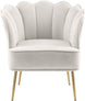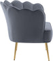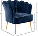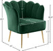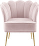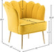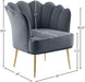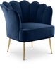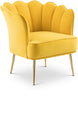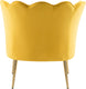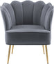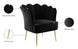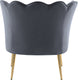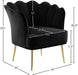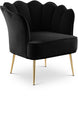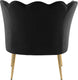 Rest your bones like an MVP when you're seated in this Jester velvet accent chair. This fun chair features a sculpted back upholstered in chic rich black velvet with a shell motif and deeply tufted channels that cradle your body in full comfort while you get comfortable. The base is made from metal for long-lasting service, and the legs are finished in gold for a beautiful, contemporary touch.