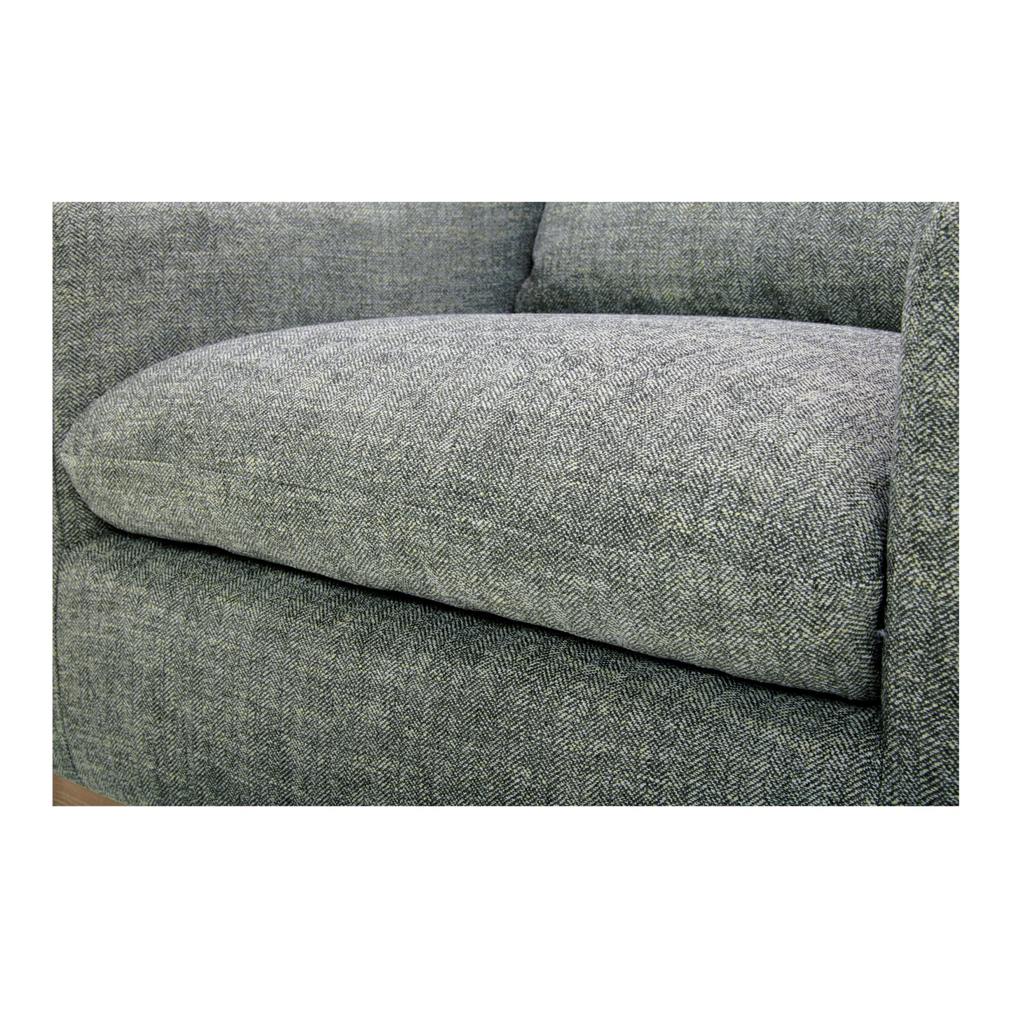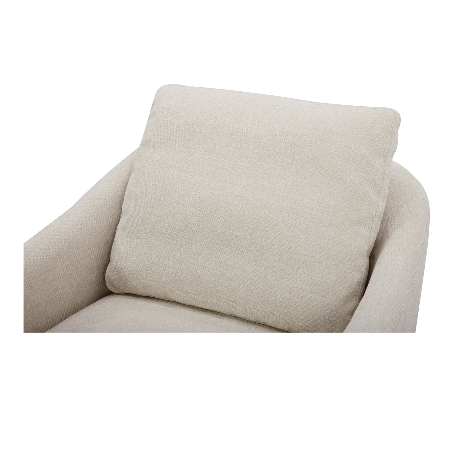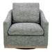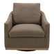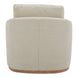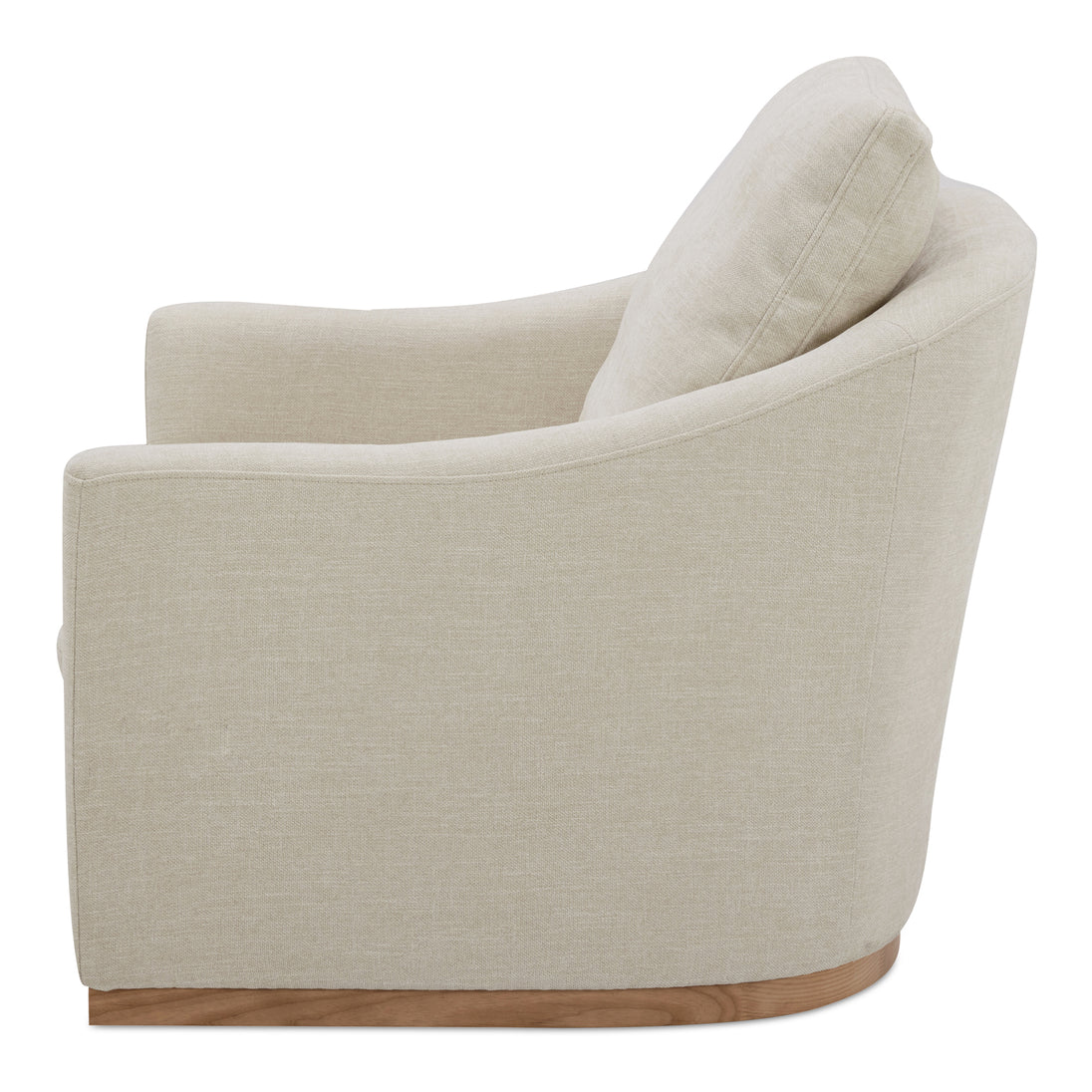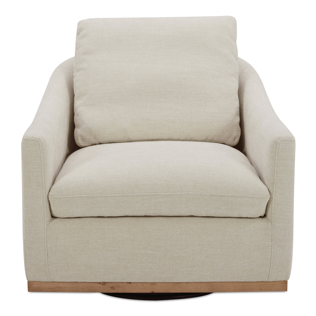 The Linden swivel chair features a curved barrel back paired with a generously sized toss cushion support. A smooth, solid wood base completes the look with a 360° swivel function for an updated, sophisticated feel.