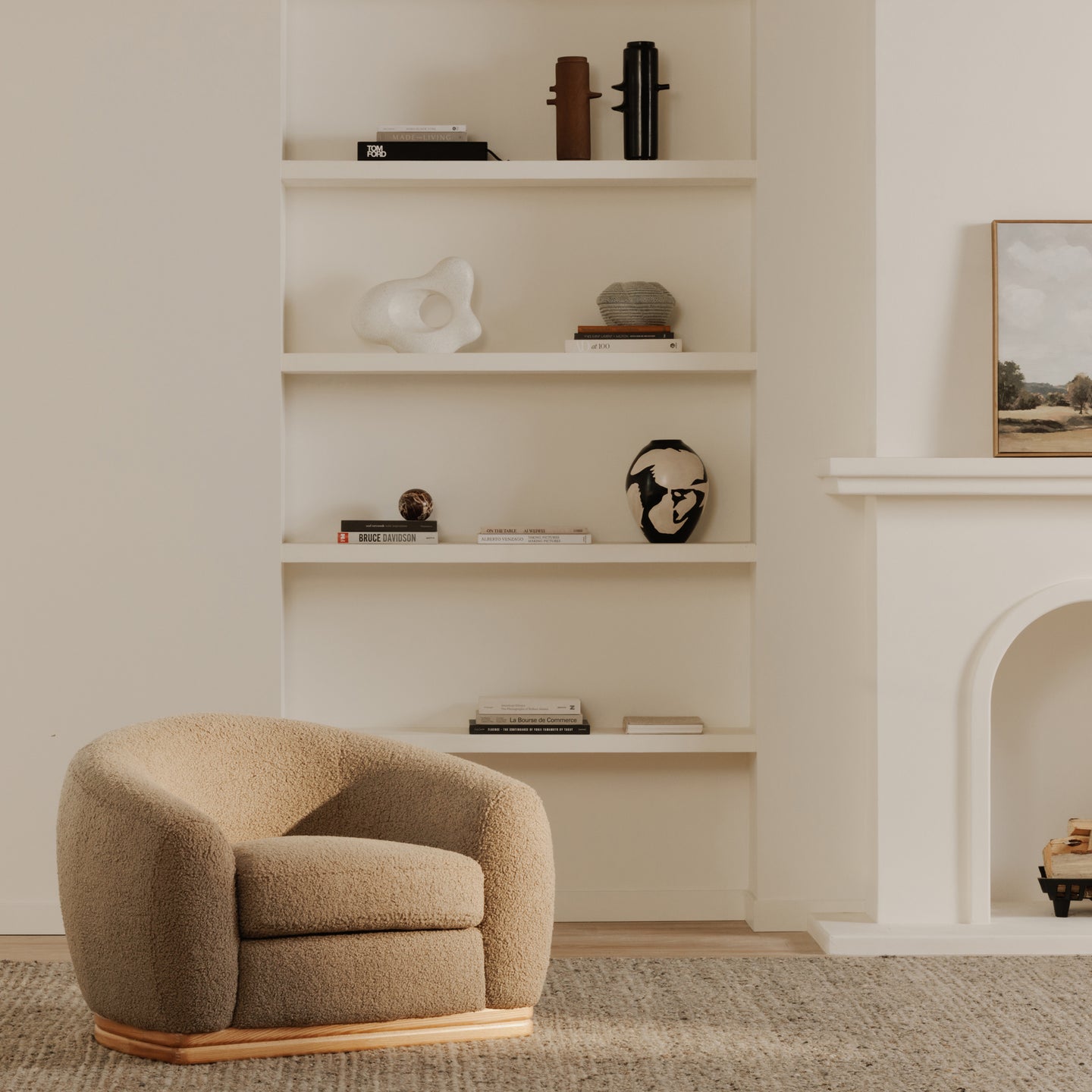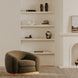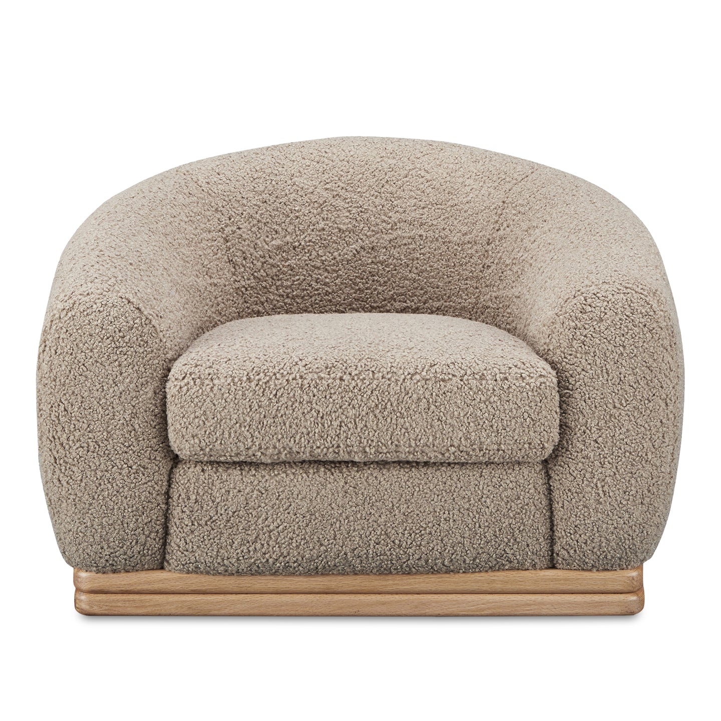 With its curved back and exaggerated proportions, the Marlowe lounge chair offers an enveloping sanctuary that is cozy and contemporary. The tiered rubber wood base adds visual interest as a contrast to the oversized seat. Soft faux shearling fabric adds a touch of elegance to a statement piece that brings both comfort and sophistication.