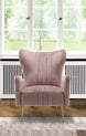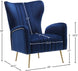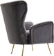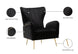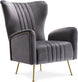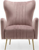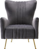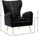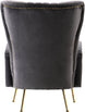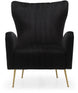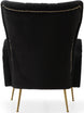 Inject contemporary finesse into your space with this pretty Opera black velvet accent chair that puts a new twist on a classic design. This chair features a plush footprint with thickly padded back, seat, and arm cushions that cradle each part of your body, so you can relax and unwind at day's end. The legs are made from stainless steel for strength and durability and have a gold tone finish for a rich, elegant look. Horizontal tufting on the seat and back add to the distinctive look of this fabulous chair.