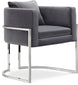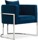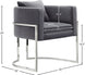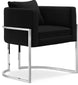 Make your living quarters stand out with this unique black velvet Pippa accent chair that conveys your own special flare. Its stocky curved back is upholstered with plush black velvet, providing you with a soft, comfortable place to rest while sitting and drinking coffee or reading a book after a long day. Rich chrome stainless steel legs give this chair a contemporary design that is sure to stand out among your existing modern decor.