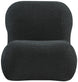 Lounge the day away from the comfort of this black Quadra boucle fabric accent chair. Perfect to set a casual vibe in any room, this accent chair offers a slanted back to help you position yourself comfortably for an evening of binge watching your favorite programs. An iron metal frame ensures long-lasting performance, while a rich black teddy fabric upholstery adds welcoming softness.