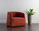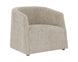 Make a statement with this fascinating lounge chair that commands attention. Features an intriguing, round shape and upholstered in husky beach fabric. Also stocked in treasure russet and gold performance fabrics.
