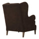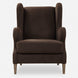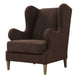A classic wingback chair with a modern twist. Dramatic curved lines are accentuated by the rich chocolate faux shearling. Resting on solid wood tapered legs finished in weathered light walnut. Seat height is 19".