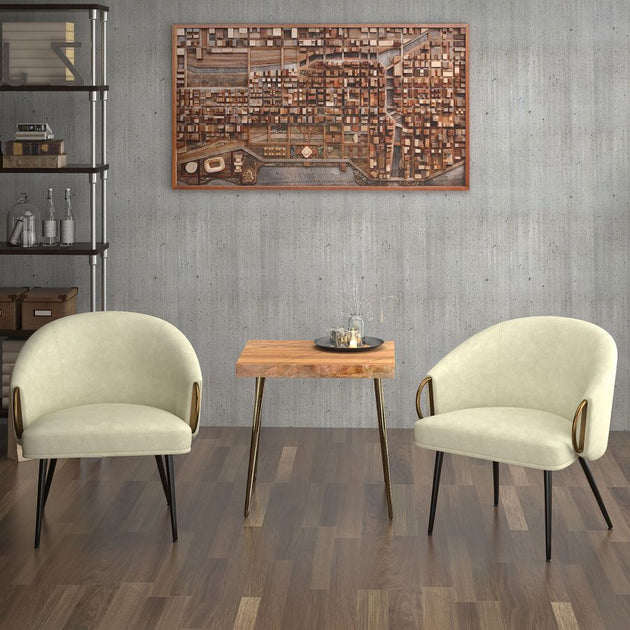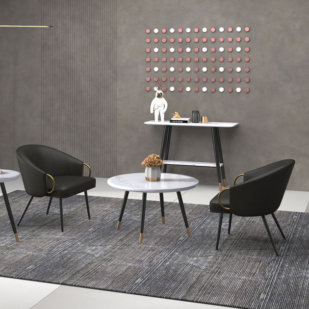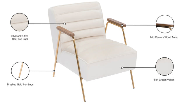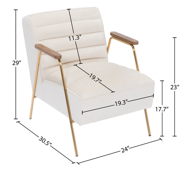 Zita Accent Chair in Vintage Ivory Faux Leather and Black and Aged Gold