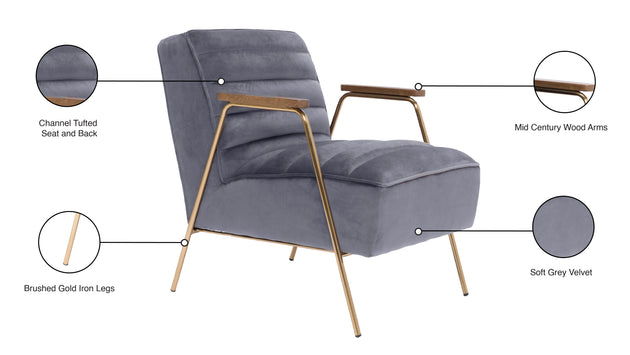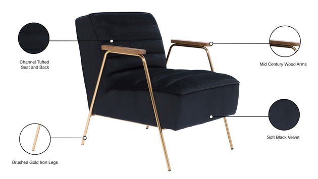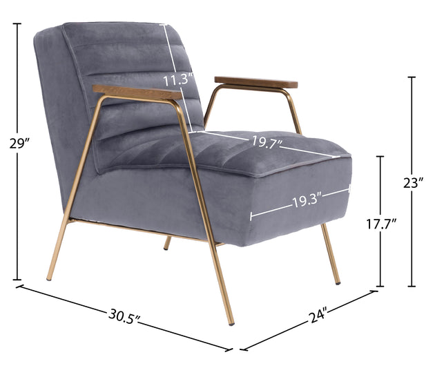 Zita Accent Chair in Vintage Charcoal Faux Leather and Black and Aged Gold