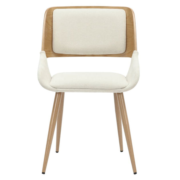Hudson Dining Chair in Beige Fabric and Natural Metal and Wood