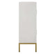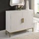 The Front Range Cabinet's streamlined design and classic finishes make it a perfect addition to virtually any space. The exterior is oak veneer with a painted white finish, accented with aged gold iron. Has one interior fixed shelf.