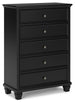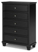 - 5 smooth-gliding drawers with dovetail construction and ball-bearing side glides