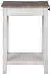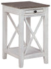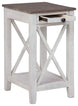 - Made of veneer, solid and engineered wood in distressed white and gray finish