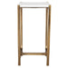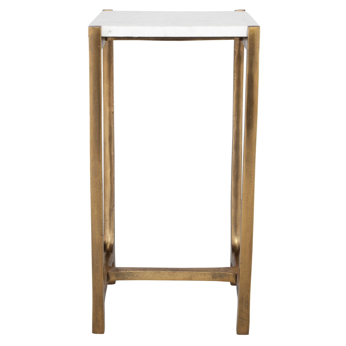 With understated sophistication, the Affinity Accent table complements with ease. Featuring a shapely cast aluminum base in antique gold that encapsulates a natural white marble top. True to the nature of natural materials, each piece will have unique marbling and veining throughout.
