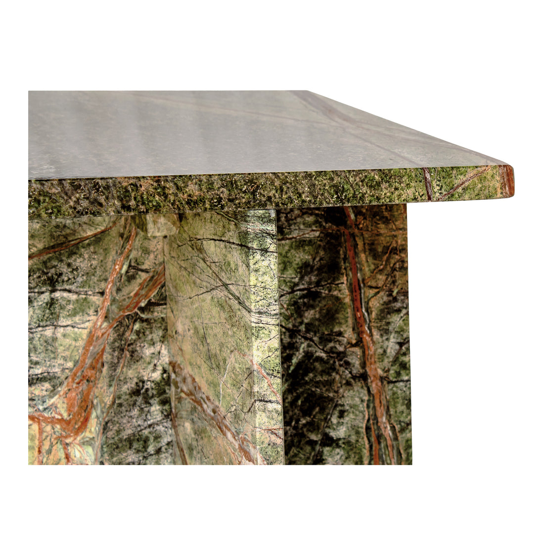 Crafted from solid golden forest marble, the Blair accent table's clean, linear form accentuates the expressively colored stone. Unique veining ensures that no two pieces are alike, as the patterning showcases the organic beauty of nature that dances across its facade.