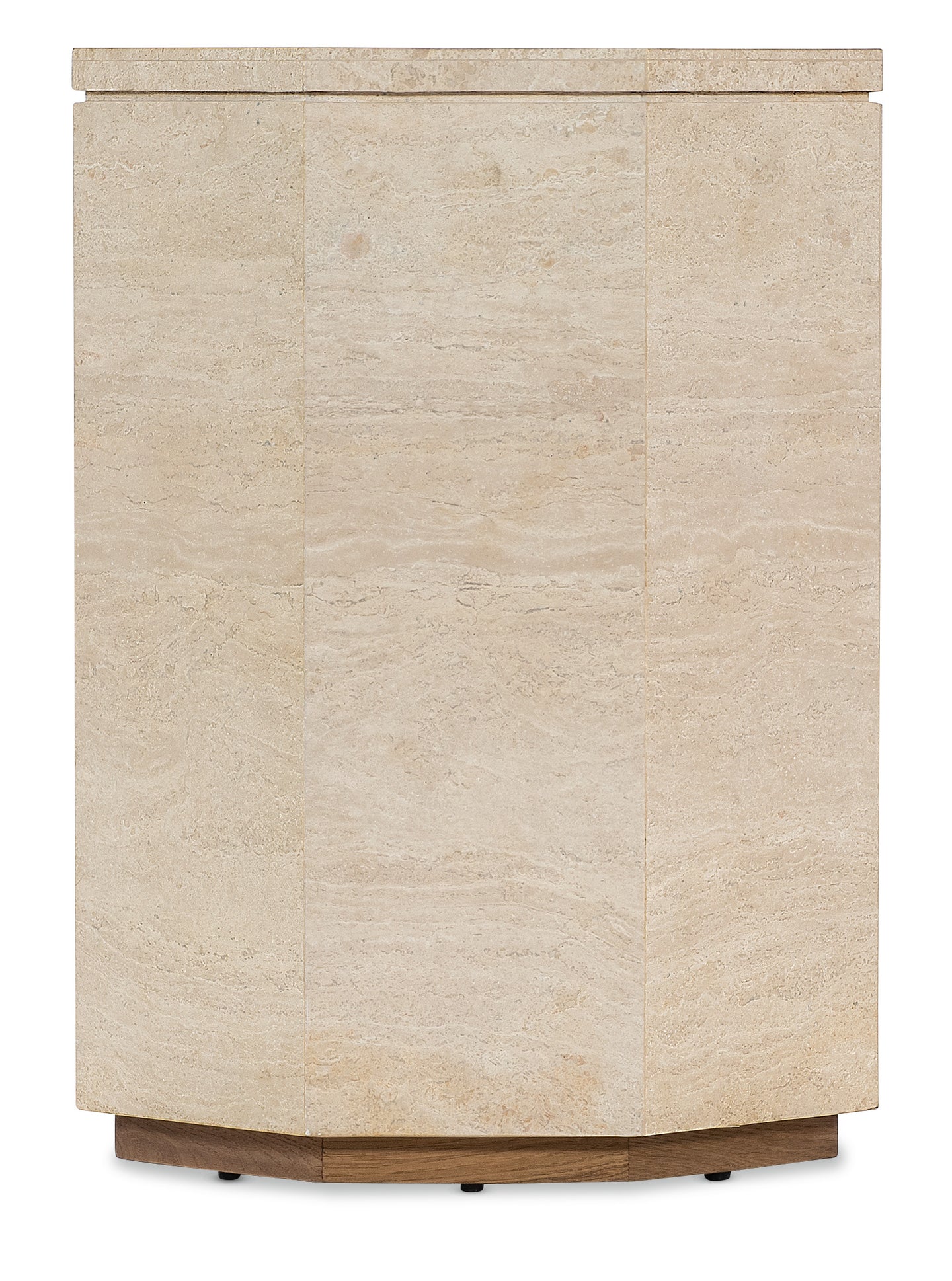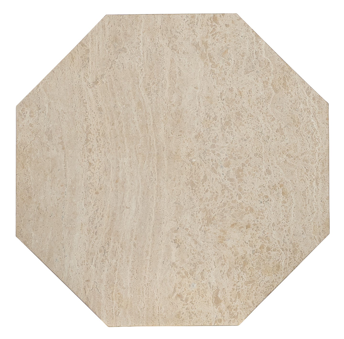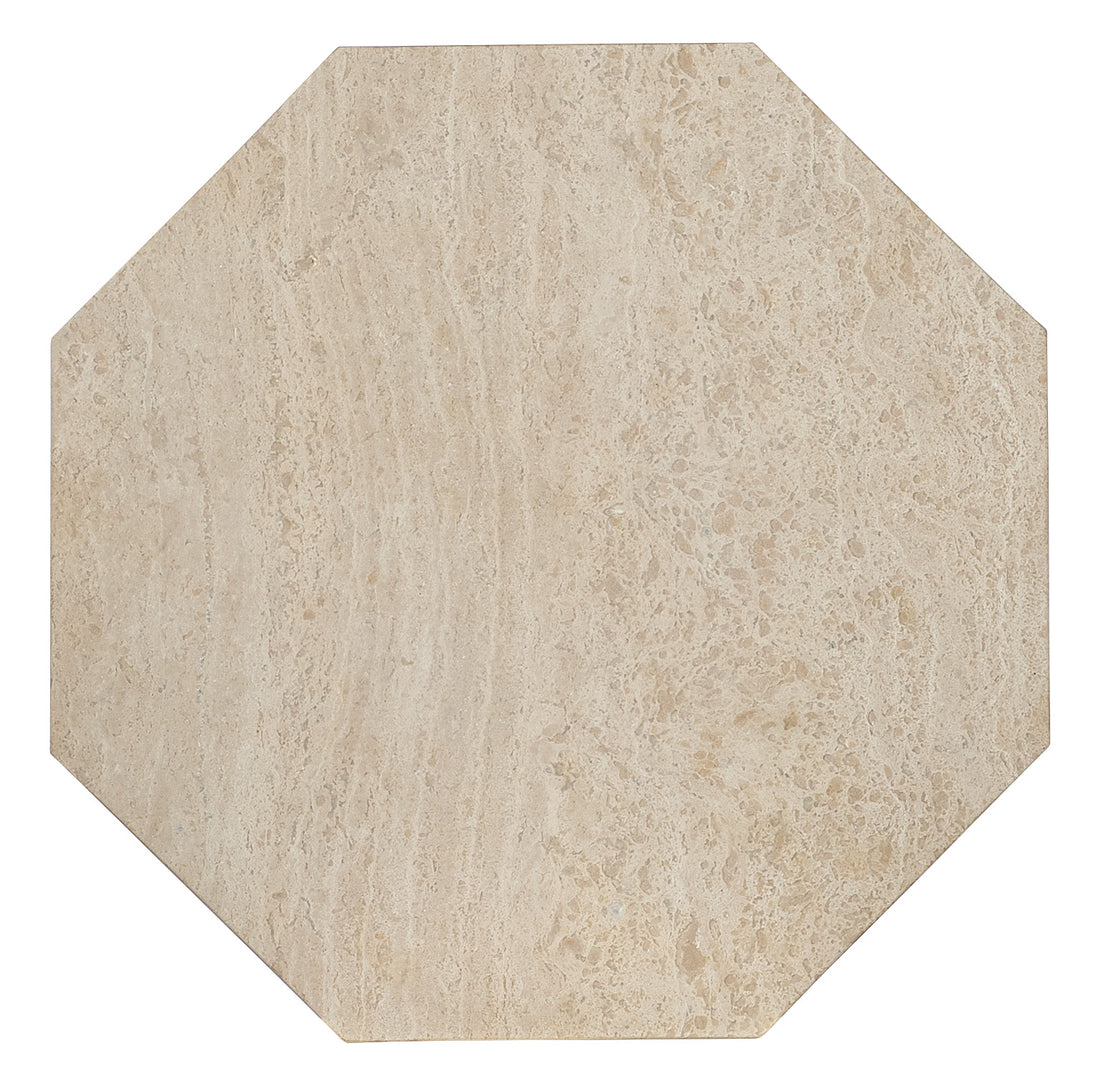 A compact, octagonal design gives the Haven Spot Table a distinct look. With a marble top and side panels featuring natural beige, cream, brown, and gray colorations, this table exudes understated luxury. The plinth base and solid marble construction make it a durable and stylish option for any living room or lounge area.