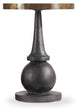 An eclectic mix of sophisticated materials creates a curated chic modern look on this versatile accent table, blending an acid-washed, patina-finished brass metal top with a distressed black-finished base.