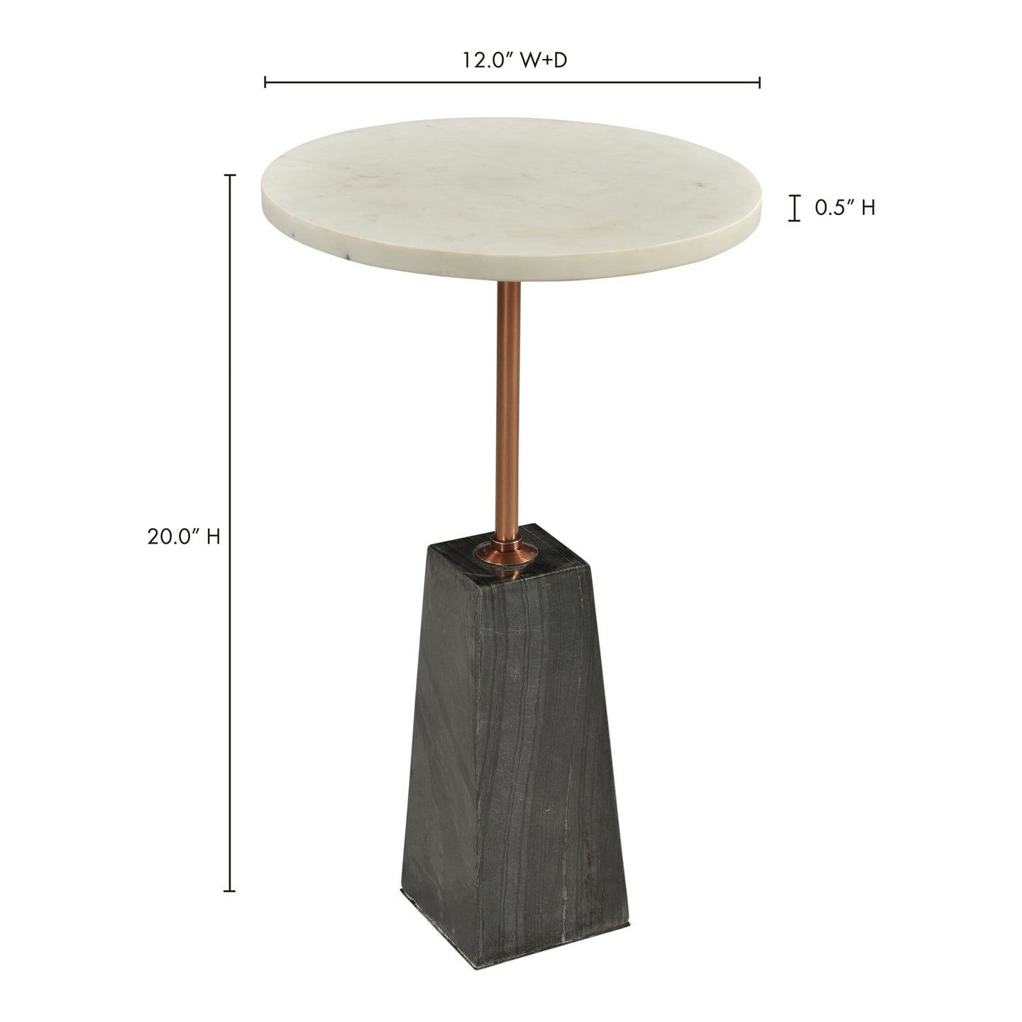 A mix of black and white marble, the Dawn accent table brings together contemporary modern design with minimalism and structure-play. This table is versatile and unique with a moody grey marble base, a brass-finished iron post, and a stunning white marble top —the perfect wow factor for your living space.
