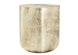 - This hand crafted, 22" high drum shaped accent table in a warm, antique gold metal, lends a boho-glam vibe to a living room or bedroom.