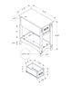- Features a storage drawer with a black metal pull handle and a bottom shelf for extra organization, all in a space saving design perfect for small rooms.