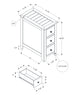 Here is a practical and stylish solution for any room in your home with this 24 inch high accent table in a warm espresso brown veneer finish. With a space saving design, bring this handy table into your living room as an end or side table, or place a slim lamp on the tabletop accented with grooved lines and use it as an elegant nightstand in the bedroom. This transitional style accent table features 3 storage drawers attached with elegant black metal knobs, perfect to tuck away a book, magazine, an extra pair of glasses or remotes within reach. Crafted with durable materials, this versatile table includes a 5 year limited warranty against manufacturer's defects for your satisfaction and long lasting enjoyment. Easy to assemble with illustrated instructions and all hardware with floor protectors included, this accent piece will bring that finishing touch you needed in your space.