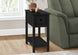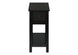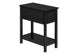 This practical 24 inch high accent table with fashionable style is a must-have piece for your home. With a space saving design, this 2 tier side table is perfect for small spaces with its narrow profile to set next to an armchair or sofa in a living room with a small lamp or decorative objects on the easy to clean top, or as a charming nightstand in the bedroom. The black veneer finish with sturdy straight solid wood legs brings some warmth to a space. The storage drawer on easy metal glides is accented with a black metal knob and the roomy bottom shelf allows you to conveniently keep essentials organized and within reach. Durably designed with quality materials, this practical end table is backed by a 5 year limited warranty against manufacturer's defects for your convenience. Easy to assemble with illustrated instructions, all hardware and floor protectors are included so you can have this versatile accent table setup and ready to enjoy.