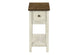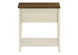 This fashionable and practical 24 inch high accent table is a must-have piece for your home. With a space saving design, this 2 tier side table is perfect for small spaces with its narrow profile to set next to an armchair or sofa in a living room with a small lamp or decorative objects on the easy to clean top, or as a charming nightstand in the bedroom. This two-tone table with an espresso brown veneer top and antique white veneer finish with sturdy straight solid wood legs brings some warmth to a space. The storage drawer on easy metal glides is accented with a bronze metal knob and the roomy bottom shelf allows you to conveniently keep essentials organized and within reach. Durably designed with quality materials, this practical end table with fashionable style is backed by a 5 year limited warranty against manufacturer's defects for your convenience. Easy to assemble with illustrated instructions, all hardware and floor protectors included so you can have this versatile accent table setup and ready to enjoy.