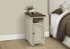 If you want an accent table that combines both practicality and style, then take a look at this 24 inch high side table with a warm antique white and espresso brown veneer finish. This fashionable side accent table with an easy to clean top is perfect to set next to a sofa or chair in your living room, or add a reading lamp on top and place in your bedroom as a charming nightstand. This traditionally designed, space saving end table has plenty of storage options that include an open shelf to tuck away a book or a small basket, and a built-in cabinet accented with elegant metal knob in an antique bronze finish, great for storing other essential items. Durably designed in wood materials and easy to assemble with full illustrated instructions and hardware, you will enjoy this narrow side table in your home for years to come. A 5 year limited warranty against manufacturer's defect is included to assure you are purchasing a quality piece of furniture.