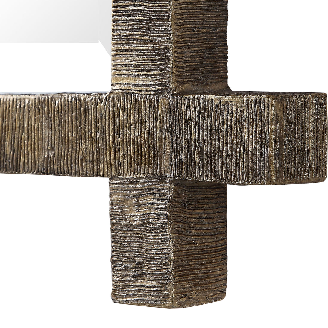 This Mirror Features An Antique Gold Finished Frame With Ribbed Texture, Adding A Tribal Feel. The Piece Has A Generous 1 1/4" Bevel And May Be Hung Horizontal Or Vertical.Product Features