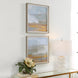 These Serene Landscape Prints Are Shown Under Glass Featuring Clay, Sage, And Light Blue Tones With Gold Leaf Accents. Each Print Is Accented By A Linen Liner And A Natural Wood Tone Frame. Artwork By Victoria Borges.Product Features