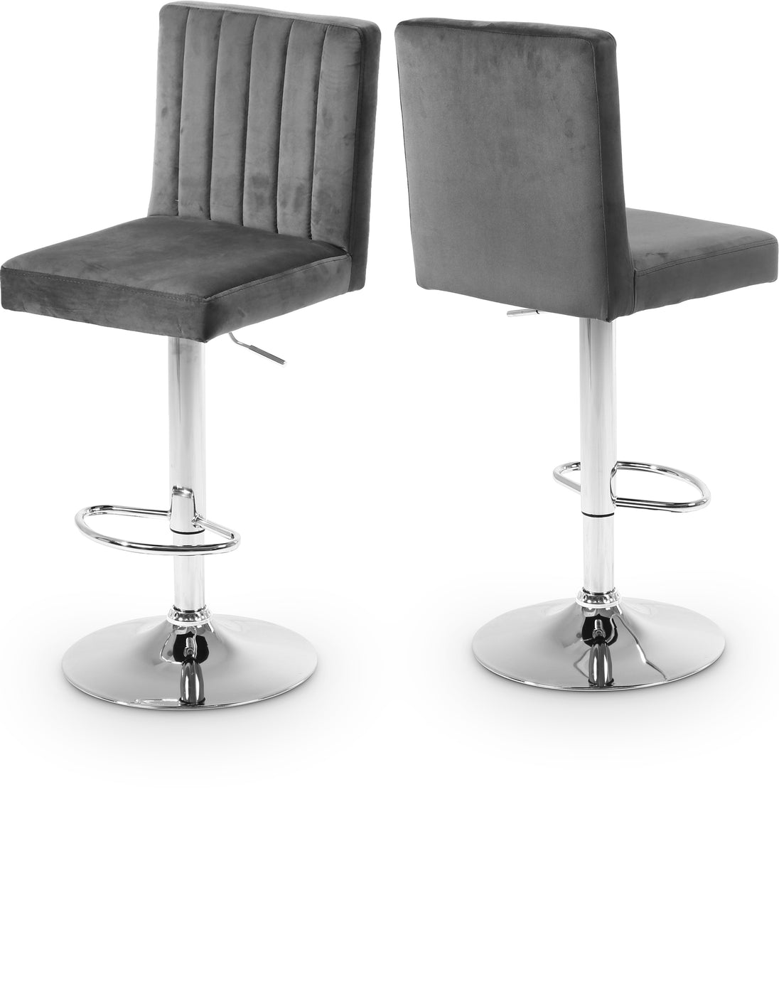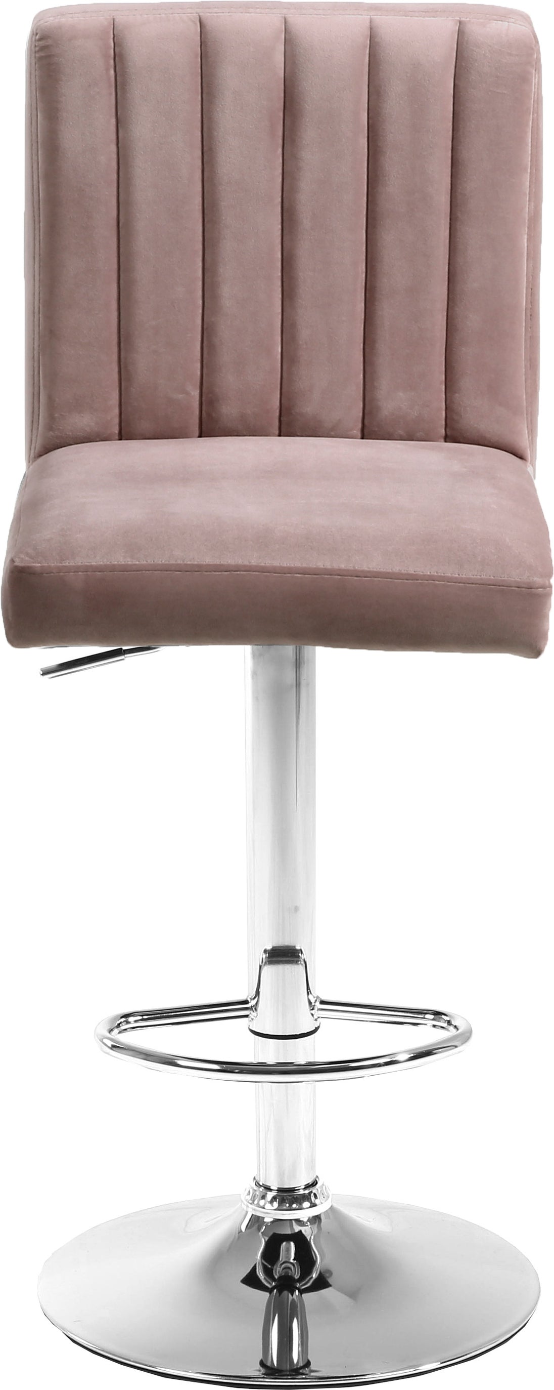 Relax in total comfort while sipping cocktails from this Joel Black Velvet Adjustable Stool. Rich velvet upholstery gives this stool a luxe look that oozes glamour and sophistication with every turn. The chrome-finished base has a definitive modern edge, and a foot rail on the bottom gives you a spot to rest your feet while you unwind. Easily raise or lower the seat with just the touch of a lever to ensure custom comfort at the home bar or your kitchen counter.
